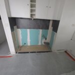 Dans ce logement, la colonne passait derrière les éléments bas de cuisine, entièrement masquée par les meubles et le plan de travail. Pour y accéder, nous avons procédé à la dépose complète de l’ensemble des éléments bas, ouvert la cloison, remplacé la section de colonne concernée, puis reposé une cuisine entièrement neuve.
