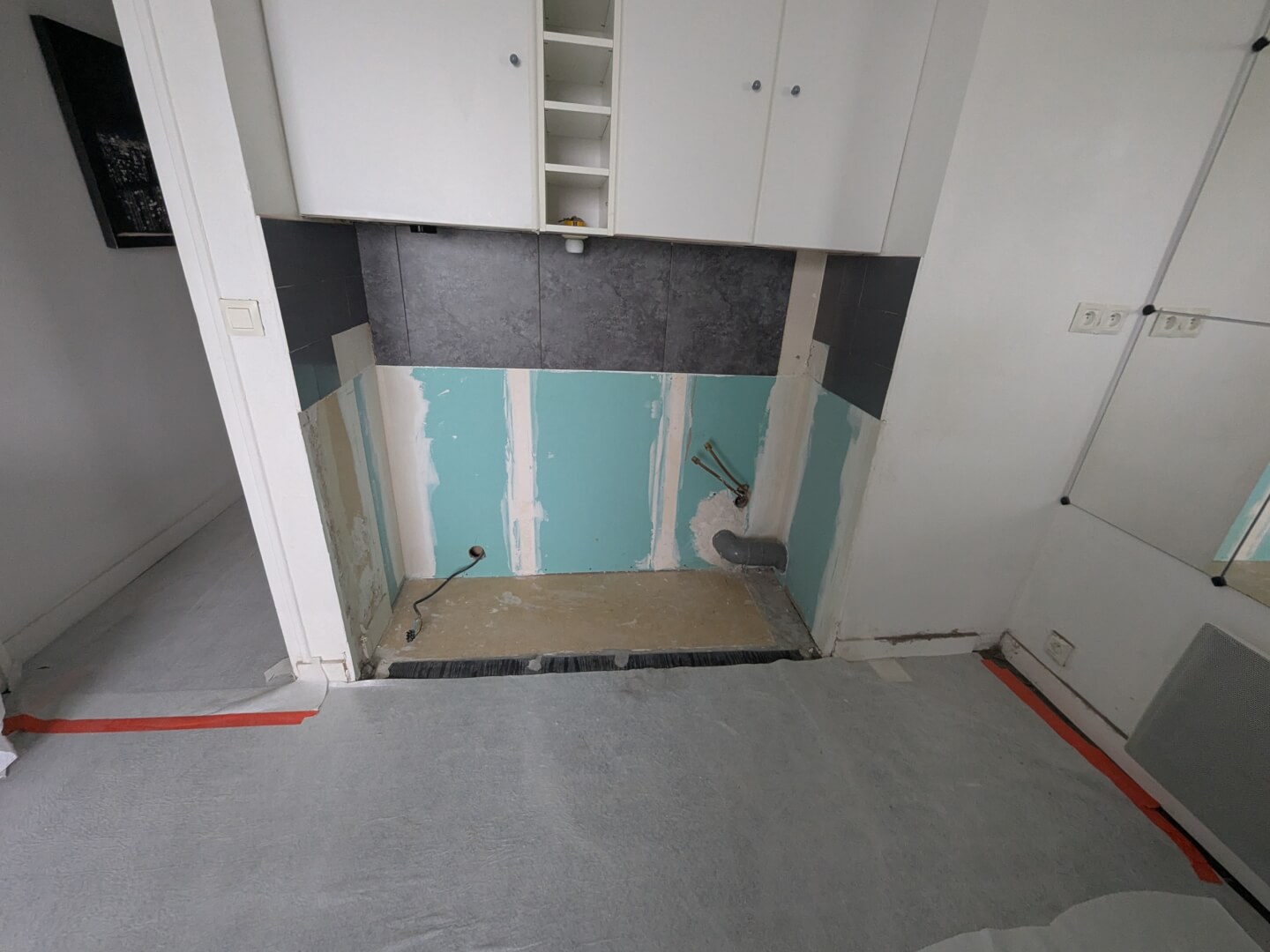 La colonne est entièrement encastrée. Pas de trappe, aucun accès prévu dans les appartements. Pour l’atteindre, la déposer et la remplacer, il n’existe qu’une seule option : casser dans trois appartements simultanément, coordonner les interventions, et remettre chaque logement en état à l’issue des travaux.